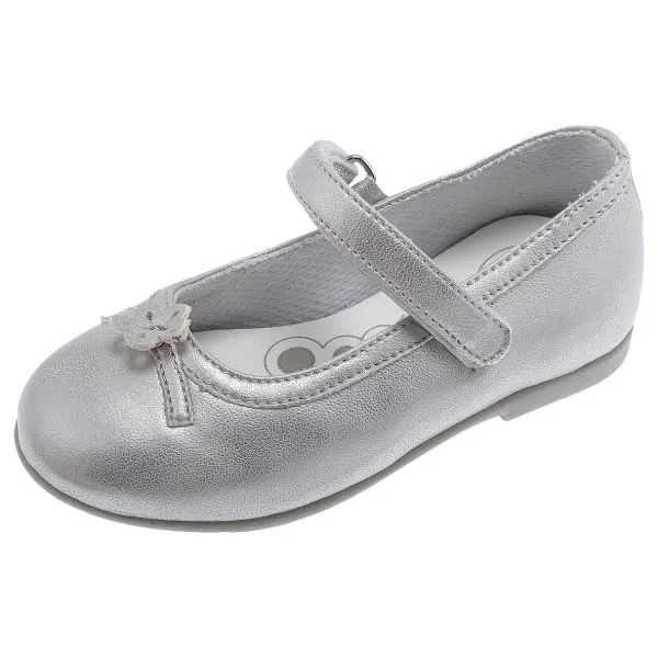 - Elegante Ballerina In Materiale Laminato Argento Con Fiore E Strass, Regolabile Con Velcro