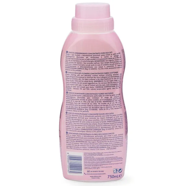 - Ipoallergenico E Dermatologicamente Testato Su Pelli Sensibili, L’Ammorbidente Chicco Fiori Delicati È Pensato Per Il Trattamento Delle Fibre Dei Capi Del Tuo Bambino E Di Tutta La Famiglia.