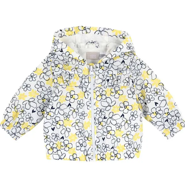 Giacche|Chicco Giubbino Con Volant E Fantasia All Over Con Fiorellini- Poliestere Riciclato Bianco E Giallo