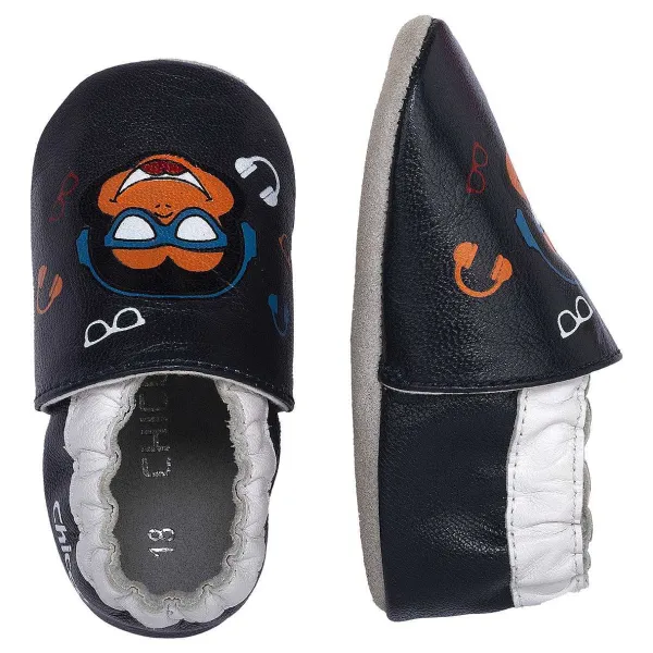 - Pantofola Da Bambino Destrutturata In Pelle, Pensata Per I Suoi Primi Passi. Morbida Leggera Flessibile E Con Buffo Personaggio. Regolabile Grazie All’Elastico Inserito Nella Tomaia. Perfette Da Utilizzare In Casa O All’Asilo.
