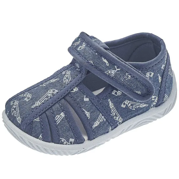 - Pantofola Da Bambino Ad Uso Interno/Esterno Casa In Tessuto Con Stampa Macchinine. Regolabile Con Velcro