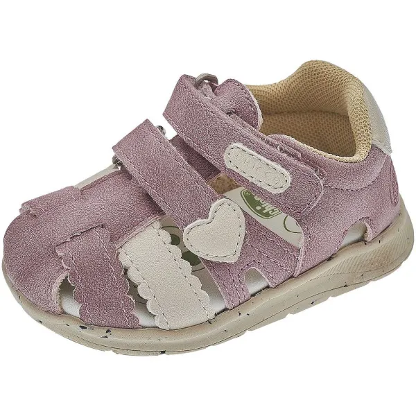 - Eco+ / Sandalo Primi Passi Da Bambina A Punta Chiusa Con Decorazione A Cuore E Doppia Regolazione Velcro