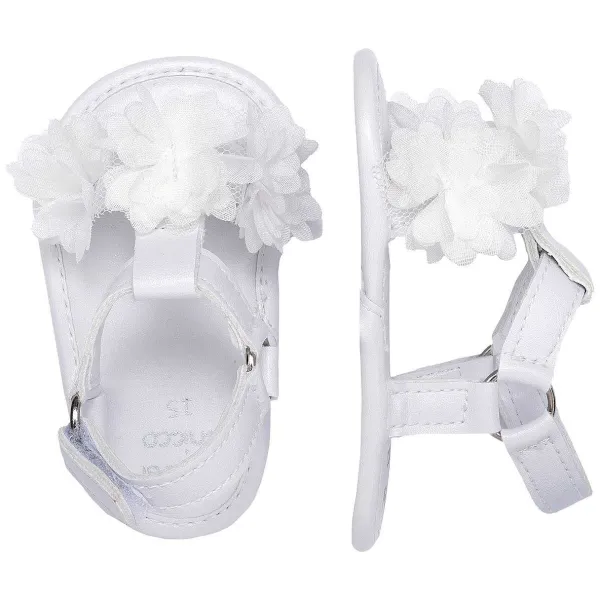 - Elegante Sandalo Da Bambina Con Applicazione Di Fiori In Tulle. Regolabile Con Velcro Posteriore