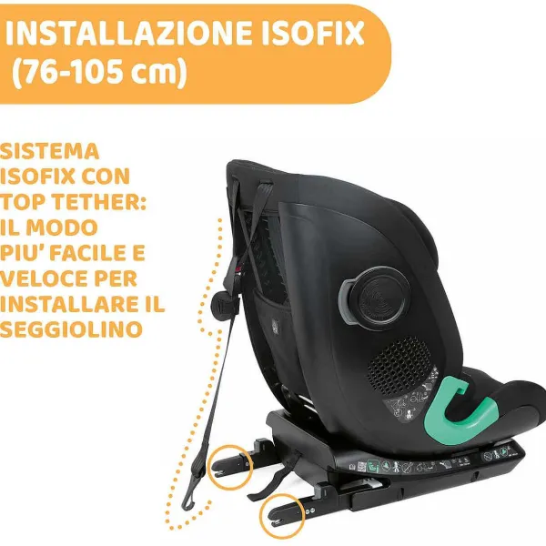 - Facile Installazione Fronte Strada Grazie Ai Connettori Isofix, Top Tether E Ad Un Sistema Di Cinture A 5 Punti Fino A 21 Kg. A Partire Dai 100 Cm Di Altezza, L’Installazione Viene Fatta Con La Cintura Di Sicurezza A 3 Punti (Isofix Sono Optionali).