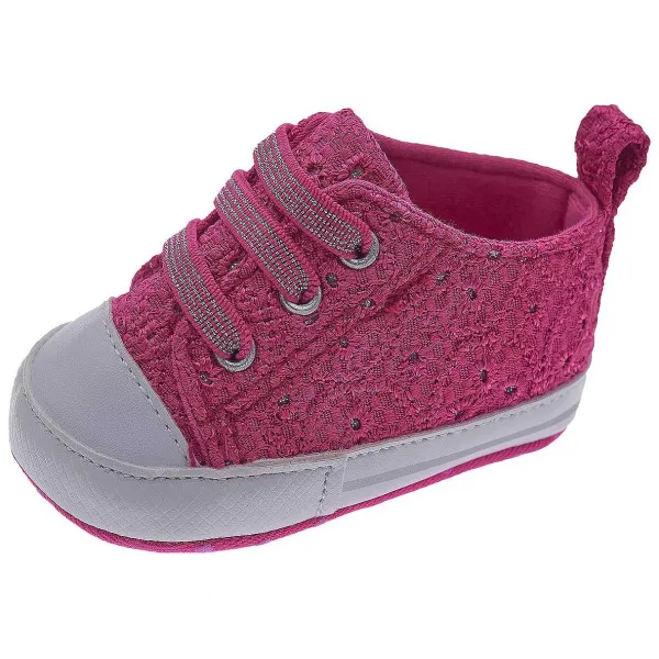 - Sneakers Da Bambina In Tessuto Sangallo Con Dettagli Argento. Regolabile Con Lacci Elastici