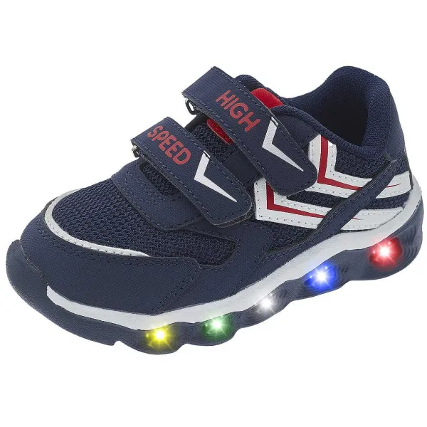 - Chicco Light – Sneakers Da Bambino Doppio Velcro Dal Look Sportivo Con Inserti In Tessuto Tecnico E Decorazione Laterale . Suola Bicolore Super Leggera Con Led Luminosi Multicolor