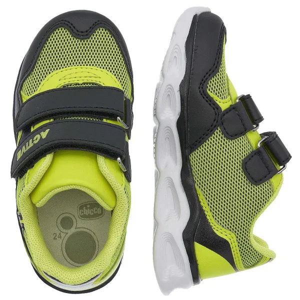 - Chicco Light – Sneakers Da Bambino Doppio Velcro Dal Look Sportivo Con Inserti In Tessuto Tecnico Giallo Fluo. Suola Bicolore Super Leggera Con Led Luminosi Multicolor
