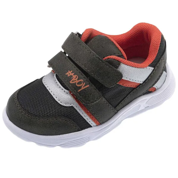 - Sneakers Da Bambino Dal Look Sportivo Con Inserti In Tessuto Tecnico E Decorazione Laterale, Doppia Regolazione Velcro E Suola Super Leggera