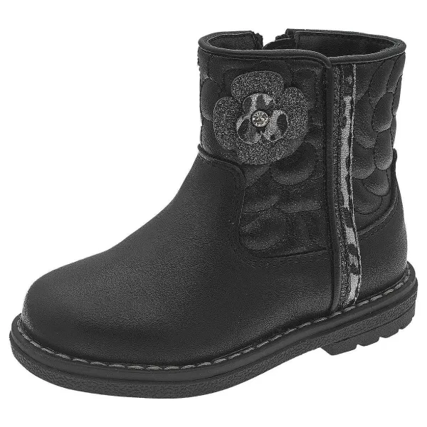 - Stivaletto Da Bambina Con Gambale Trapuntato E Fiore Glitter, Regolabile Con Zip