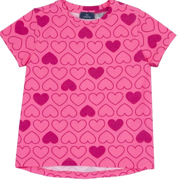 T-Shirt|Chicco Maglietta Con Stampa Fantasia Cuori Rosa Rigato