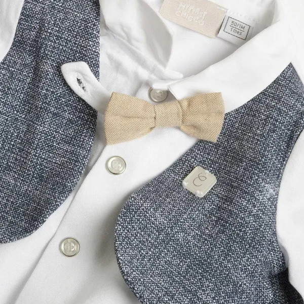 - Gilet Applicato In Cotone Elasticizzato Stampa Fantasia E Papillon Rimovibile