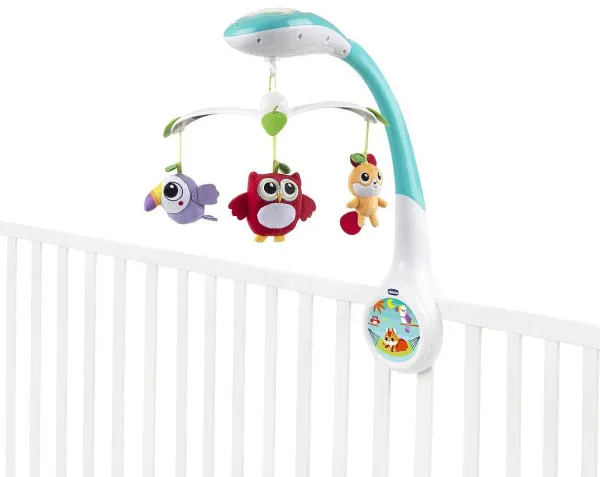 - Giostrina Proiezione Foresta Magica Di Chicco Dispone Di 3 Funzioni Elettroniche Attivabili Singolarmente O Selezionando La Combinazione Preferita: Proiezioni Di Immagini A Colori, Musica Rilassante E Rotazione Dei Peluche Sospesi