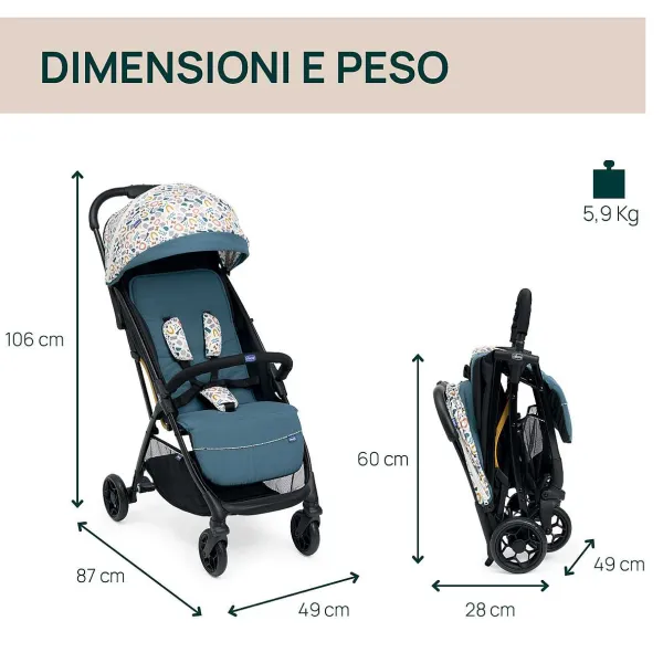 - Il Passeggino Si Chiude Con Un Solo Movimento Ed È Leggerissimo: Pesa Solo 5,9 Kg!