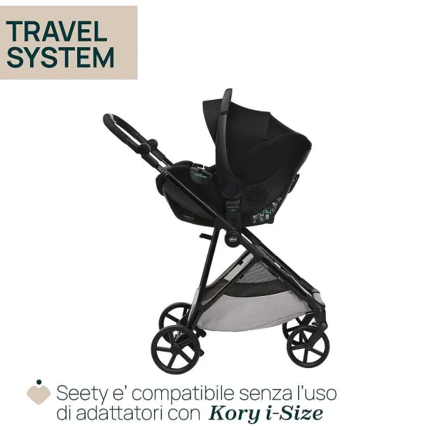 - Si Tratta Di Un Sistema Leggero E Modulare Compatibile Con La Navicella Seety E Il Seggiolino Auto Kory I-Size. Si Possono Attaccare Entrambi Alla Struttura Del Passeggino Senza Bisogno Di Adattatori!
