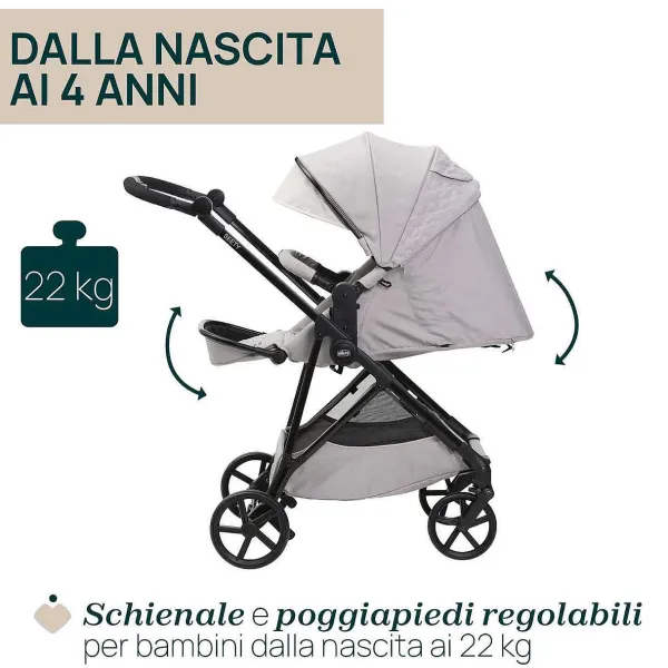 - Il Passeggino Seety Dispone Dell’Omologazione Dalla Nascita Fino A 22 Kg Grazie Allo Schienale Completamente Reclinabile E Al Poggiapiedi Regolabile