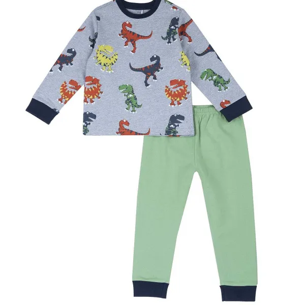 - Pigiama Maglia Con Fantasia Dinosauri E Pantaloni Tinta Unita