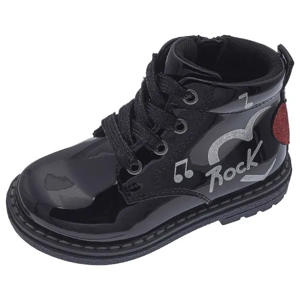 - Polacchino Moda Da Bambina Con Stampa Rock E Applicazione Glitter A Forma Di Cuore E Stella, Regolabile Con Lacci E Zip Laterale