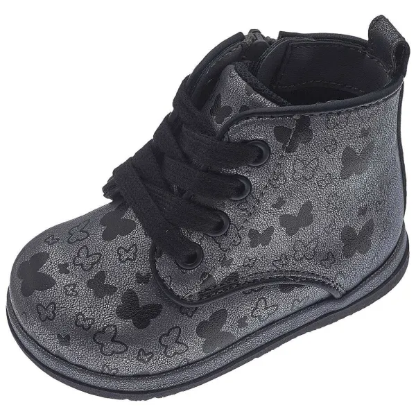 - Polacchino Primi Passi Da Bambina Dal Look Fashion In Materiale Laminato A Stampa Farfalle. Regolabile Con Lacci E Zip Laterale