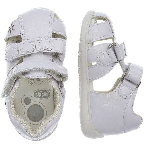 - Sandalo Primi Passi Da Bambina Con Cuori E Piccole Microforature A Fiore, Pratica Doppia Regolazione Velcro