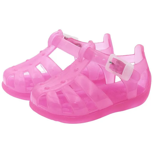 - Sandalo Mare Da Bambina Con Punta E Tallone Chiuso In Morbido Materiale Plastico Fuxia Trasparente. Regolabile Con Fibbia