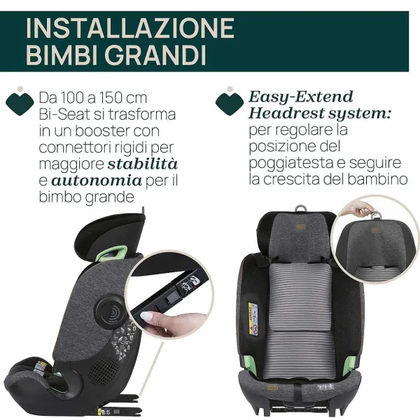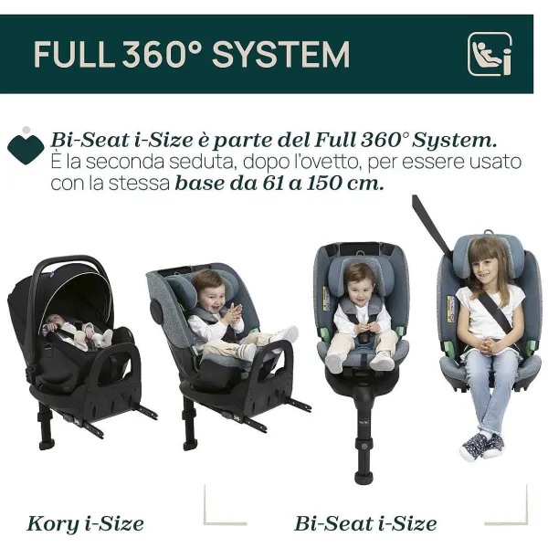 - Bi-Seat I-Size Air È Il Primo Seggiolino Auto Modulare Che Accompagna Il Bambino Da Circa 4 Mesi A 12 Anni E Che Riutilizza La “Full 360 I-Size Base” Fino A Circa 4 Anni.