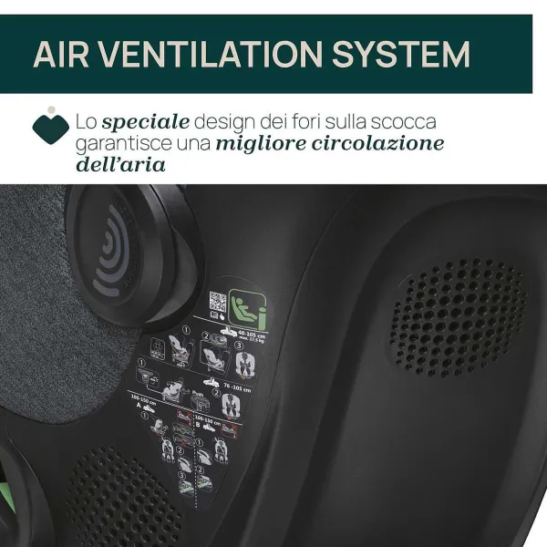 - Rivestito Con Un Tessuto 3D Sullo Schienale Per Un Flusso D’Aria 6 Volte Superiore A Un Tessuto Standard. (Studio Effettuato Comparando I Valori Di Permeabilità All’Aria Tra Il Tessuto Standard Chicco E La Rete Air 3D Secondo Lo Standard Iso 9237:1995)
