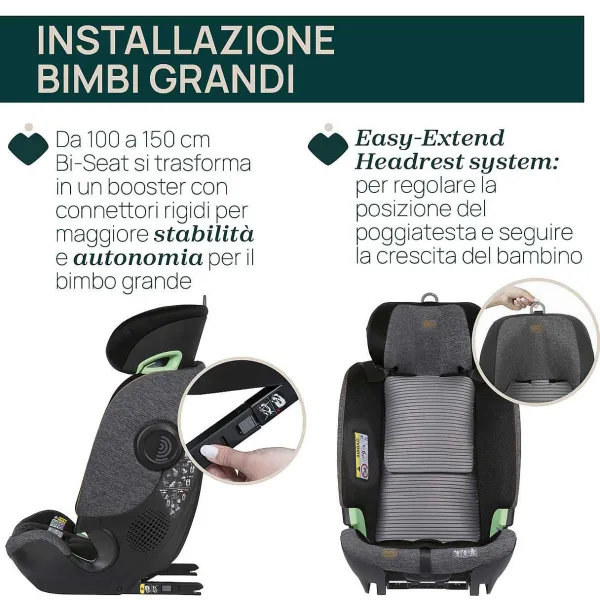 - Innovativa Struttura Modulare: La Seduta Si Installa Sulla Base Rotante Fino A Circa 3-4 Anni E Poi Si Rimuove Dalla Base Quando Si Passa All’Utilizzo Con La Cintura Dell’Auto (Modalità Rialzo Con Schienale). Premiato Con L’If Design Award 2023.