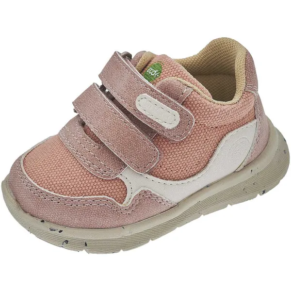 - Eco+ / Sneakers Primi Passi Da Bambina Con Inserti In Tessuto E Dettagli Color Panna, Regolabile Con Doppio Velcro. Suola Superleggera
