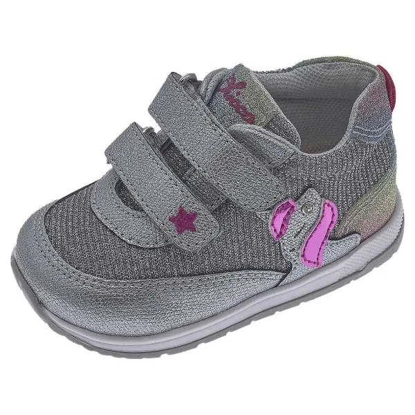 - Sneakers Primi Passi Da Bambina In Materiale Laminato Con Dettagli In Tessuto Glitter, Decorazione Laterale A Forma Di Unicorno. Regolazione Doppio Velcro
