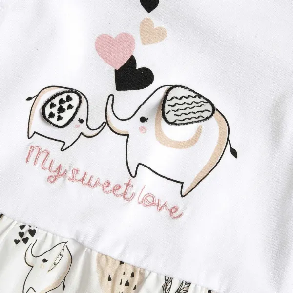 - Elefantini Stampati Sul Davanti Con Orecchie Applicate