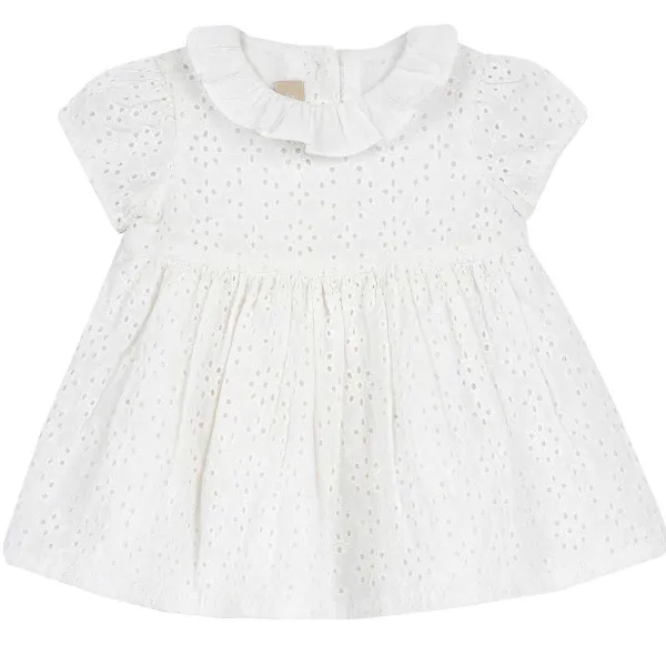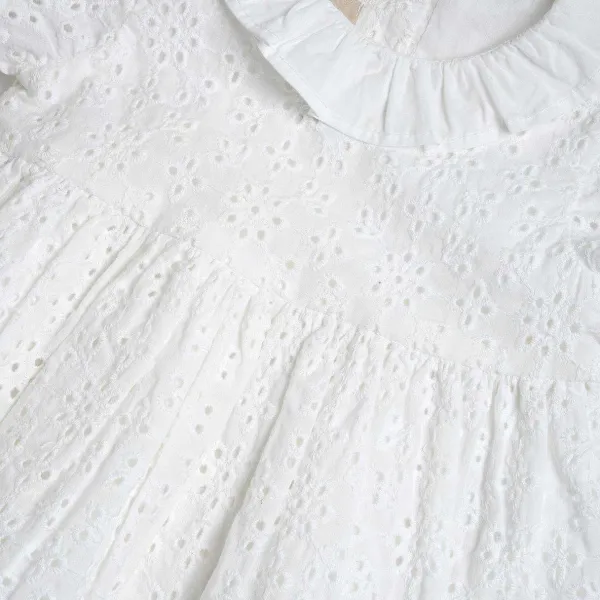 - Vestito Collo A Corolla Manica Corta In Tessuto Sangallo